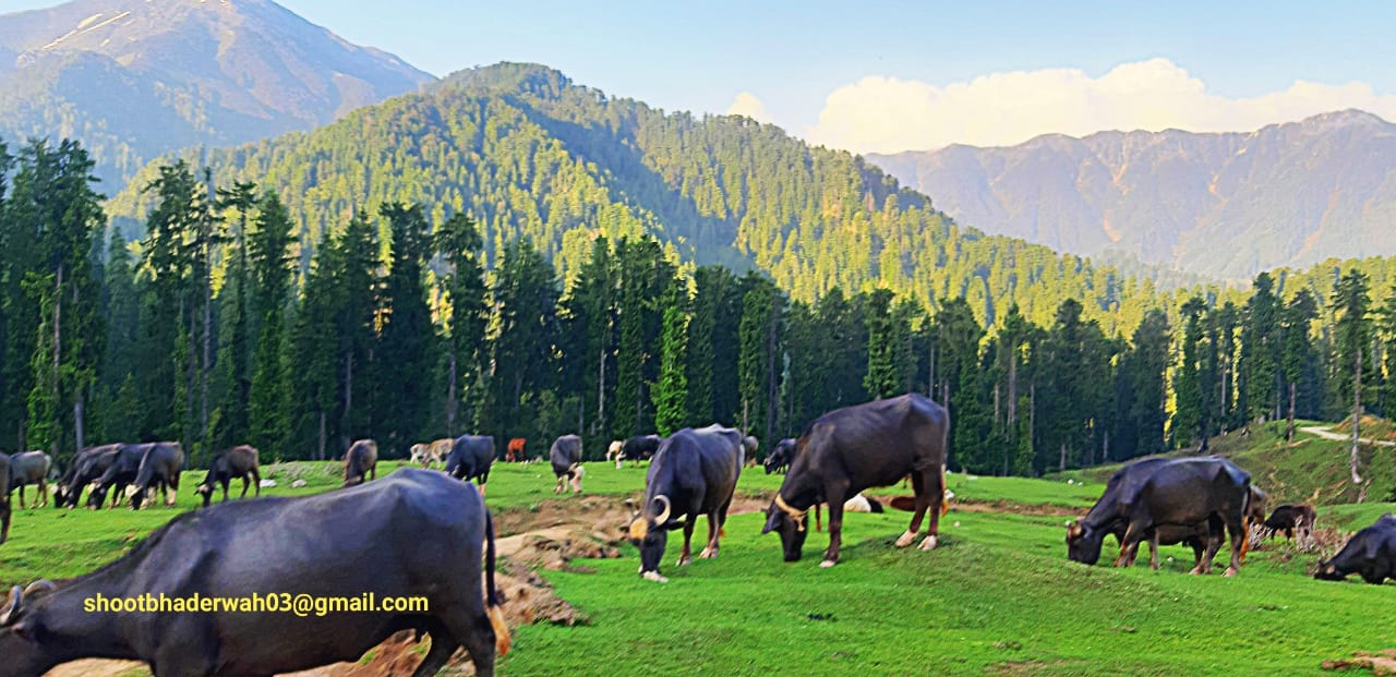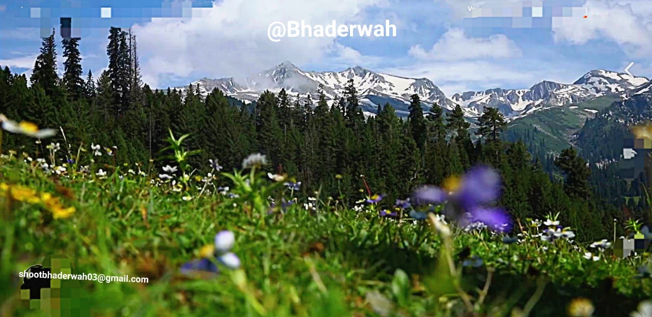 The word Bhaderwah is derived from the Hindu Goddess Bhadrakali. Formerly known as Bhaderkashi the name of place got corrupted to Bhaderwah.The land of picturesque snow capped mountains and rivers, dense black forests of deodar and pine trees, lakes and gardens, natural springs, variety of beautiful landscapes and grassy meadows, terrace fields, pleasant summers, old Temples and Mosques, glaciers, flora and fauna, alpine vegetation, easy treks, grinders operating from flowing rivers without using electricity and lots more. Many types of natural mushrooms and herbs grow in its forests. Art / Botany/ Geography teachers and nature lovers will definitely enjoy the place.